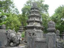 Rảo bước về phía Bắc chánh điện, du khách sẽ ngỡ ngàng trước khu vườn tháp cổ với 24 bảo tháp lớn nhỏ mang hình thái kiến trúc của nhiều thời khác nhau. Đây là nơi an trí nhục thân của các vị trụ trì và chư tôn túc trong chùa. Sau chùa, còn có tháp Bạch Hổ với tích cũ kể về tài phục hổ của thiền sư trụ trì Liễu Triệt và sự giác ngộ tu hành của hổ trắng.
