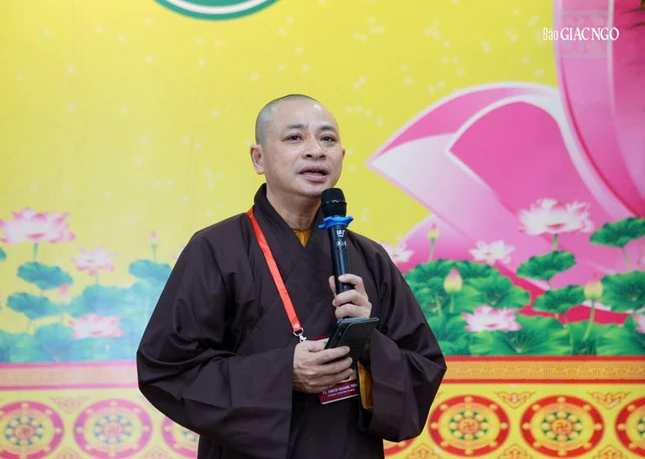Thượng tọa Thích Phước Nguyên điều phối chương trình thảo luận |