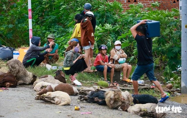 Dọc đường, hàng ngàn con dê, cừu, bò được người dân di tản lên quốc lộ. Tuy nhiên số gia súc chưa được cứu và di dời có thể rất lớn, vì khu vực này có đàn gia súc hàng vạn con.