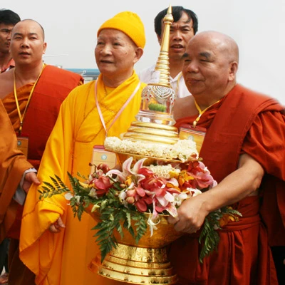 13h chiều nay đoàn nghênh rước tiếp tục chuyển 3 viên Xá lợi Phật xuống an vị tại chùa Bái Đính, Ninh Bình.