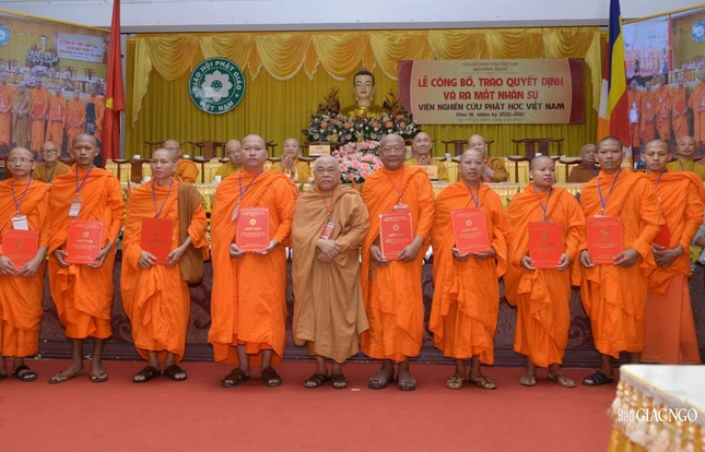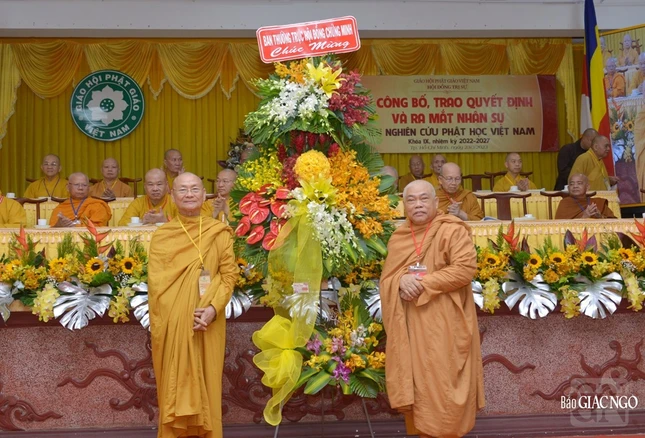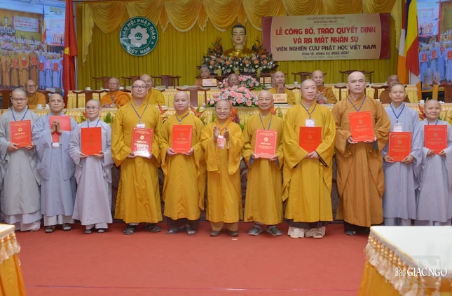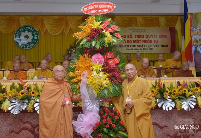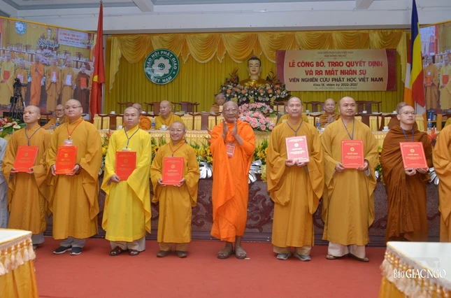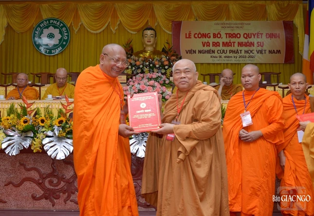 Sau đó, thay mặt Hội đồng Trị sự GHPGVN, Thượng tọa Thích Phước Nguyên đã công bố quyết định số 037 về việc chuẩn y nhân sự Viện Nghiên cứu Phật học Việt Nam khóa IX (2022-2027), gồm 2 vị Chứng minh, 98 thành viên trong đó có 16 thành viên Hội đồng Quản trị, 36 Ủy viên Thường trực và 46 Ủy viên do Hòa thượng Thích Giác Toàn làm Viện trưởng; Hòa thượng Thích Gia Quang, Phó Viện trưởng Thường trực, Viện trưởng Phân viện Nghiên cứu Phật học Việt Nam tại TP.Hà Nội; Hòa thượng Thích Tâm Đức, Phó Viện trưởng Thường trực.