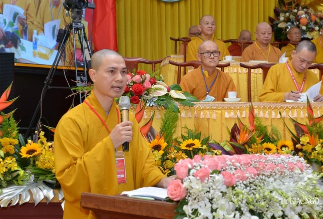 Tiếp theo, Hòa thượng Thích Minh Thành, Phó Viện trưởng trình bày những bước kế tiếp của dự án Tam tạng Thánh điển Phật giáo Việt Nam do Viện Nghiên cứu thực hiện. Đây là phần trọng yếu nhất của Viện do Hội đồng Chứng minh và Hội đồng Trị sự chứng minh và chỉ đạo.