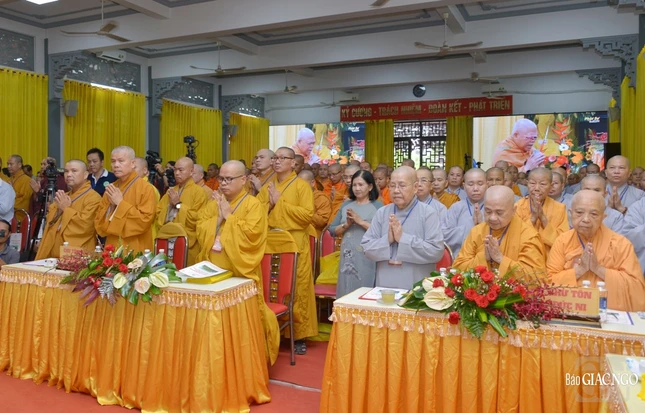 Tại buổi lễ, chư tôn đức và các đại biểu đã được xem video báo cáo sơ lược những thành quả mà Viện Nghiên cứu Phật học Việt Nam đã đạt được trong nhiệm kỳ VIII.