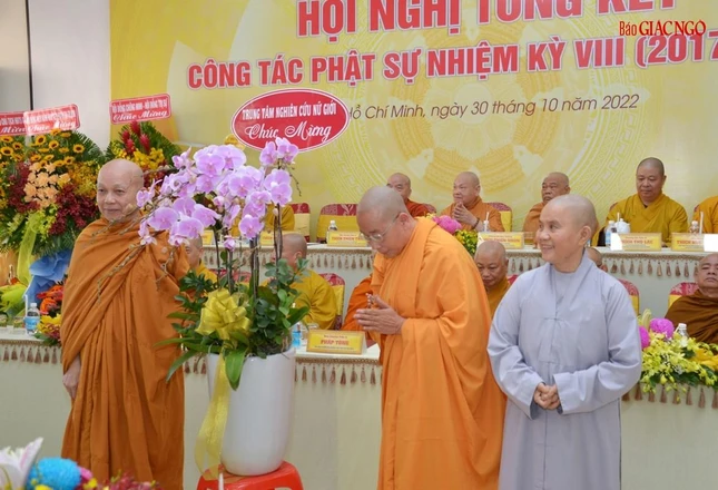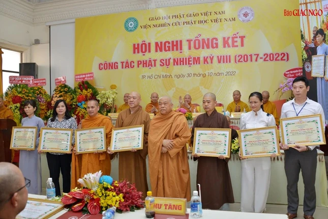 GNO - Sáng nay, 30-10, Viện Nghiên cứu Phật học Việt Nam đã tổ chức hội nghị tổng kết công tác Phật sự nhiệm kỳ VIII (2017-2022) và trình dự thảo phương hướng hoạt động nhiệm kỳ 2022-2027 tại thiền viện Vạn Hạnh (750 Nguyễn Kiệm, Q.Phú Nhuận, TP.HCM).
