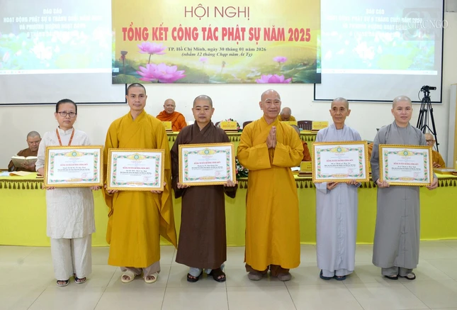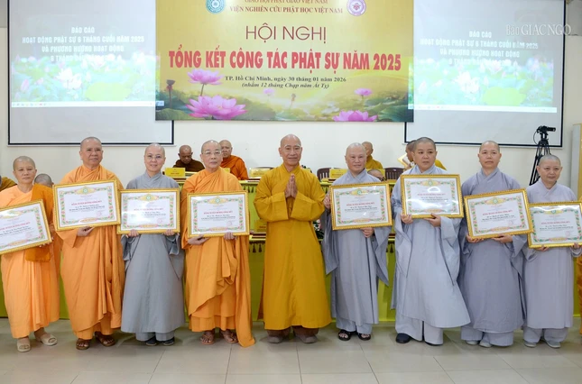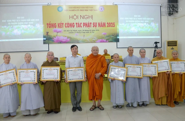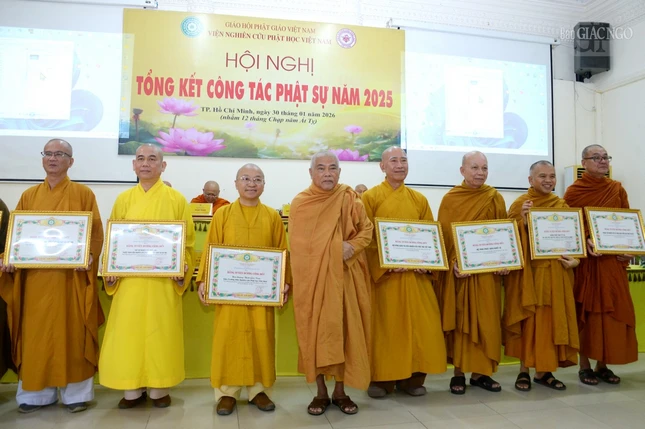 Dịp này, Hội đồng Trị sự GHPGVN, Viện Nghiên cứu Phật học VN đã trao tặng Bằng tuyên dương công đức và Bằng công đức đến các tập thể, cá nhân thuộc Hội đồng Quản trị; các phân viện, trung tâm trực thuộc nhằm ghi nhận những đóng góp, cống hiến và phụng sự trong năm 2025.