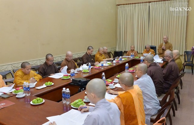 Phiên họp dưới sự chủ tọa của Hòa thượng Thích Giác Toàn, Phó Chủ tịch Hội đồng Trị sự, Viện trưởng Viện Nghiên cứu Phật học VN; chư tôn đức thành viên Hội đồng Quản trị Viện và các Trung tâm trực thuộc.