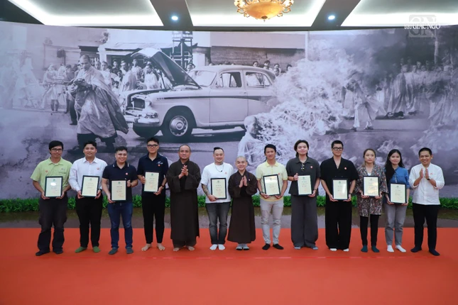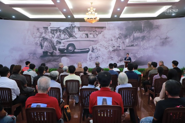 Theo đó, được sự cho phép của chư tôn đức lãnh đạo Ban Trị sự GHPGVN TP.HCM, chiều 17-5, tại hội trường Việt Nam Quốc Tự, Ban Thông tin - Truyền thông Phật giáo Thành phố đã tổ chức buổi họp mặt tri ân đến tất cả các đơn vị hỗ trợ, tình nguyện viên, đạo tràng tham gia phụng sự trong việc tổ chức tôn trí, chiêm bái xá-lợi Trái tim Bồ-tát Thích Quảng Đức, một trong những nội dung thuộc chương trình Đại lễ Vesak Liên Hiệp Quốc 2025 tại TP.HCM.