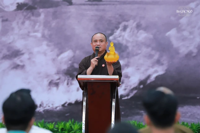 Thượng tọa Thích Tâm Hải, Ủy viên Hội đồng Trị sự thay mặt chư tôn đức Giáo hội TP.HCM, Ủy ban Đại lễ Vesak Liên Hiệp Quốc 2025 trân trọng tri ân đến hơn 1.200 nhân sự thuộc các cơ quan chức năng T.Ư, Thành phố và Q.10, cùng các đơn vị, tình nguyện viên tham gia làm việc trực tiếp trong việc tổ chức cung rước, tôn trí và chiêm bái xá-lợi Bồ-tát Thích Quảng Đức tại Việt Nam Quốc Tự.