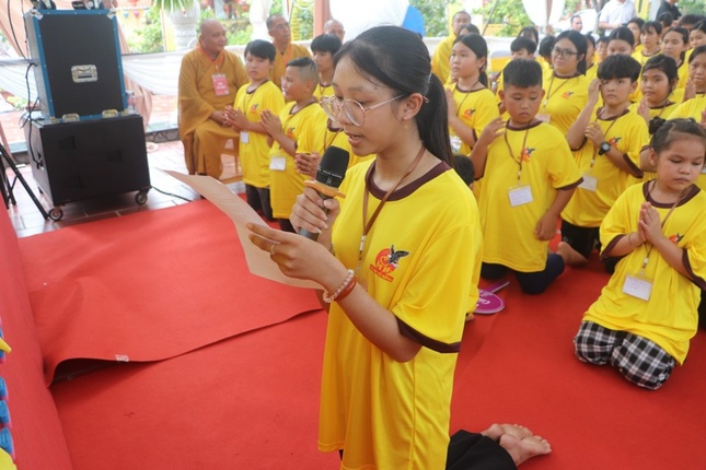 Tại buổi lễ, đại diện các em khóa sinh đã thành kính dâng lời phát nguyện trước chư tôn giáo phẩm tuân thủ nội quy và tu học nghiêm túc suốt khóa tu.