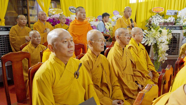 Cùng đi có Hòa thượng Thích Thiện Tâm, Phó Chủ tịch Hội đồng Trị sự; Hòa thượng Thích Lệ Trang, Trưởng ban Nghi lễ T.Ư; Thượng tọa Thích Phước Nguyên, Phó Tổng Thư ký kiêm Chánh Văn phòng II TƯGH; chư tôn đức các Ban, Viện T.Ư, Văn Phòng II T.Ư. Tháp tùng đoàn còn có đại diện Ban Trị sự GHPGVN TP.HCM, các tỉnh, thành miền Đông, Tây Nam bộ.