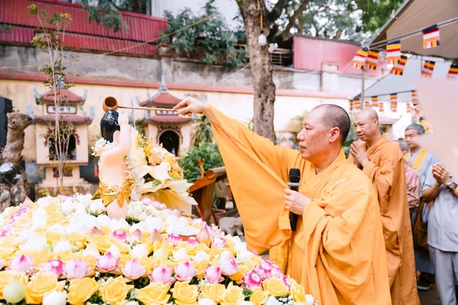 Sau phần nghi lễ chính thức, chư tôn đức cùng đại biểu niêm hương bạch Phật, cử hành nghi thức Tắm Phật truyền thống.