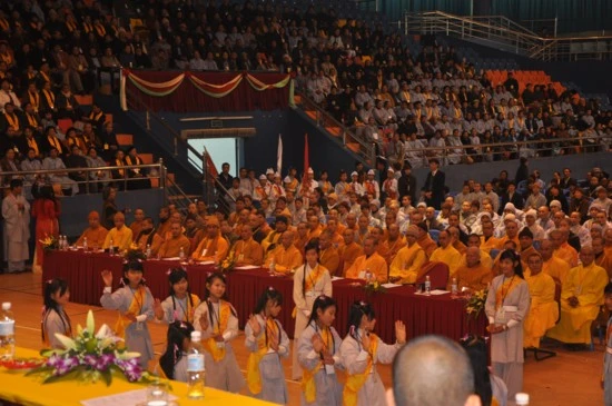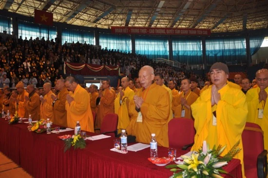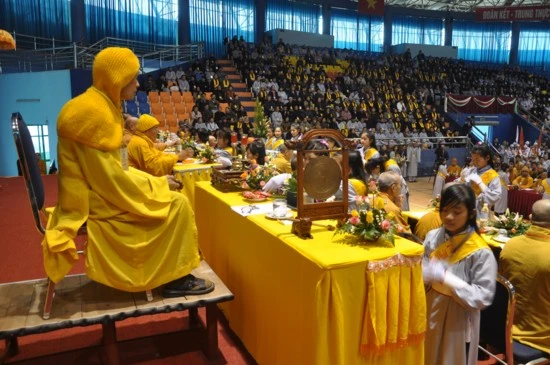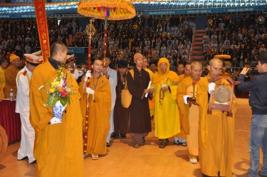 Quang lâm chứng minh buổi lễ có Đức Pháp chủ GHPGVN - HT. Thích Phổ Tuệ; HT. Thích Thanh Sam - Chánh Thư ký - Phó Pháp chủ HĐCM; chư tôn đức HĐTS, BTS các tỉnh thành phía Bắc và đông đảo Phật tử các tỉnh thành cùng về tham dự.