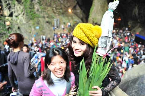 Nhân dịp đầu năm, người đẹp của bộ phim "Cô nàng bất đắc dĩ" đã cùng gia đình đi vãn cảnh chùa Hương.