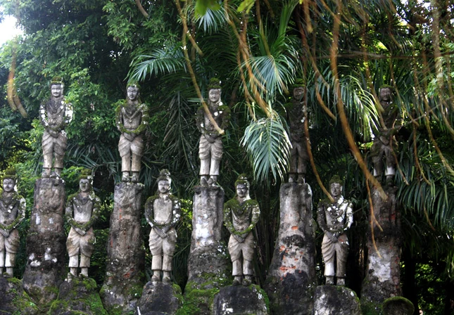 Khu vườn Phật lấy cảm hứng từ sử thi Ấn Độ cùng Phật giáo. Chất liệu xi măng thô ráp phủ lớp thời gian cùng với số lượng dày đặc của tượng trong một phạm vi hẹp tạo nên sự sống động và huyền bí cho khu vườn.