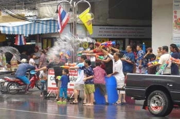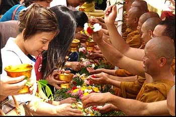 Tắm Phật: Ở Thái Lan, Phật giáo là quốc giáo vì vậy nước này ăn tết theo Phật lịch. Theo Phật lịch, năm mới bắt đầu bằng ngày Đản sinh của Đức Phật 15/4 và ngày lễ chính thức được mở đầu bằng lễ tắm Phật trên chùa. Sau lễ tắm Phật, mọi người bắt đầu chào mừng năm mới bằng hội té nước. Từ năm 1941, Hoàng gia Thái đã quy định rằng ngày Tết Songkran bắt đầu vào ngày 13-4 mỗi năm.