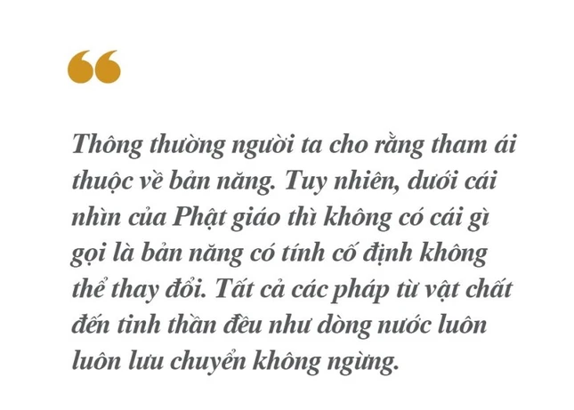 Còn nhớ câu chuyện Xá-lợi-phất lần đầu gặp Tỳ-kheo Mã Thắng khi đang khất thực trong thành Vương Xá. Thấy gương mặt trang nghiêm sáng ngời, phong độ thanh thoát của Mã Thắng, Xá-lợi-phất cảm thấy tâm hồn mình chấn động mạnh mẽ, một cảm giác mà từ trước tới giờ chưa từng có nơi ngài. Phải là một người có đời sống nội tâm như thế nào thì mới chiêu cảm được một bậc thức giả như Xá-lợi-phất. Cho nên, không ai có quyền cho phép hay ngăn cản người khác tham ái mà chỉ có thể nói rằng nhân như thế nào thì quả như thế nấy mà thôi.