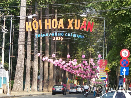 Khắp thành phố đang rộn ràng không khí mừng Xuân.