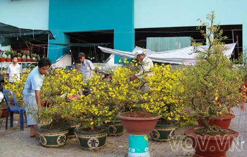 Dọc đường Cách mạng Tháng Tám, bắt đầu từ công viên Bắc Hải trải dài hàng trăm mét là các điểm bán hoa. Hoa đủ loại nhưng nhiều nhất vẫn là các loại hoa mai, cúc, thanh long kiểng…