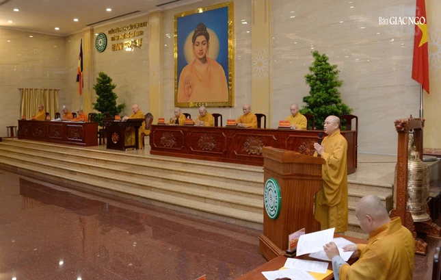 Ban Thư ký cũng thông tin về đại biểu chính thức của GHPGVN TP.HCM tham dự Đại lễ Vesak Liên Hiệp Quốc 2025 tại Học viện Phật giáo VN tại TP.HCM.
