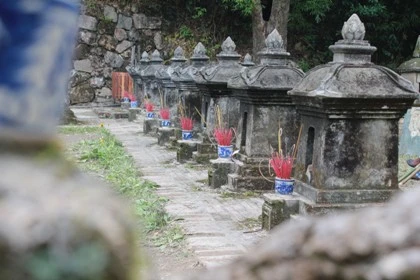 Các tháp tổ trong khu vườn mộ giây phút vắng du khách hiếm hoi.